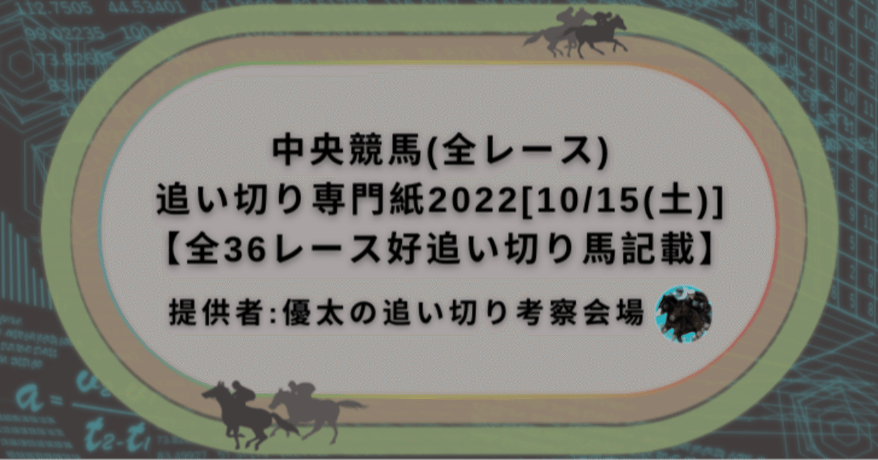 中央競馬(全レース)追い切り専門紙2022[10/15(土)]【全36レース好追い切り馬記載】の公開になります。 当コ…